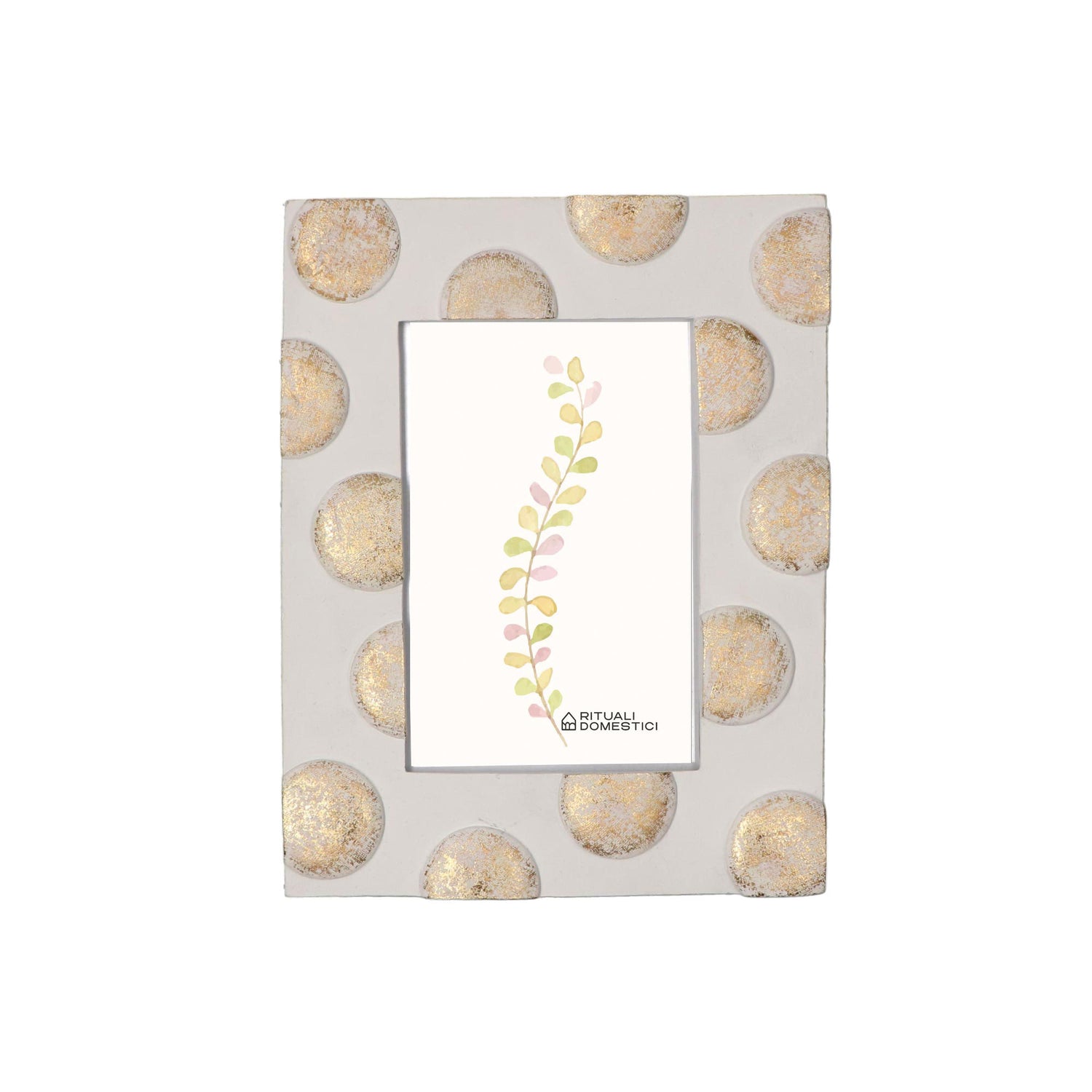 RITUALI DOMESTICI TiGuardo Portafoto 13x18cm Bianco Pois Oro Resina