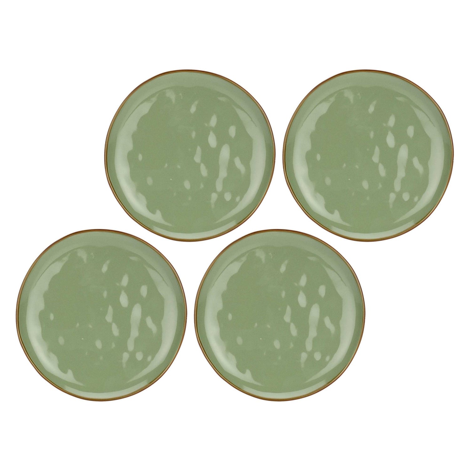 ROSE & TULIPANI Concerto Piatto Frutta Colazione 20cm Verde Oliva Set 4 Pezzi Stoneware