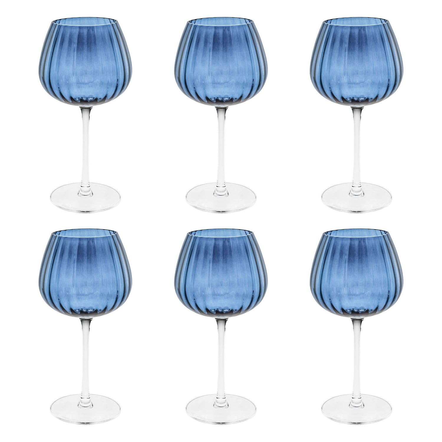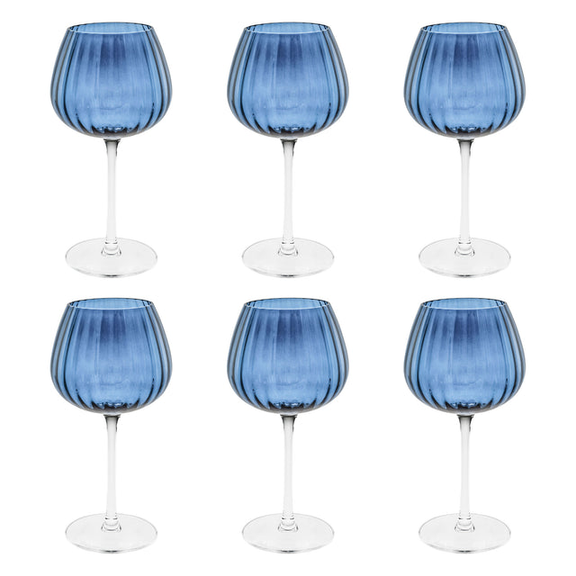 ROSE & TULIPANI Prismia Calici Universali Set 6 Pezzi 460ml Blu Vetro Soffiato e Pasta