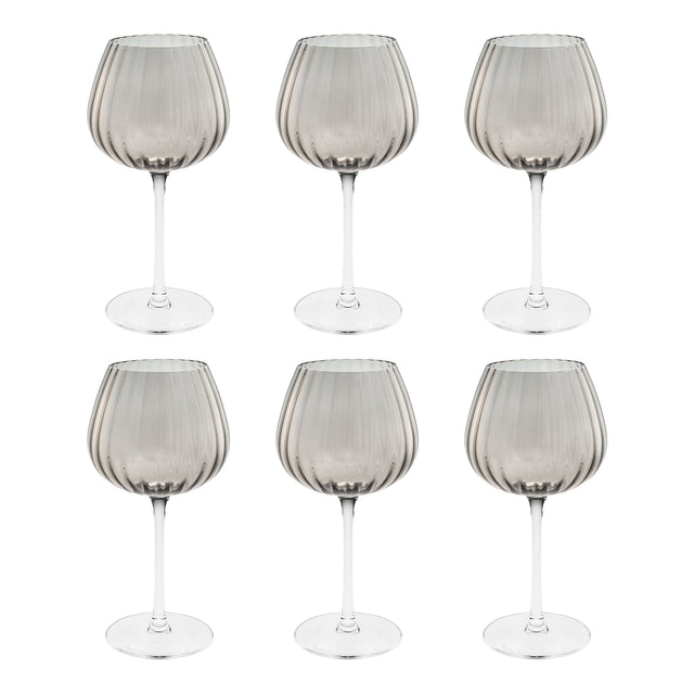 ROSE & TULIPANI Prismia Calici Universali Set 6 Pezzi 460ml Grigio Vetro Soffiato e Pasta