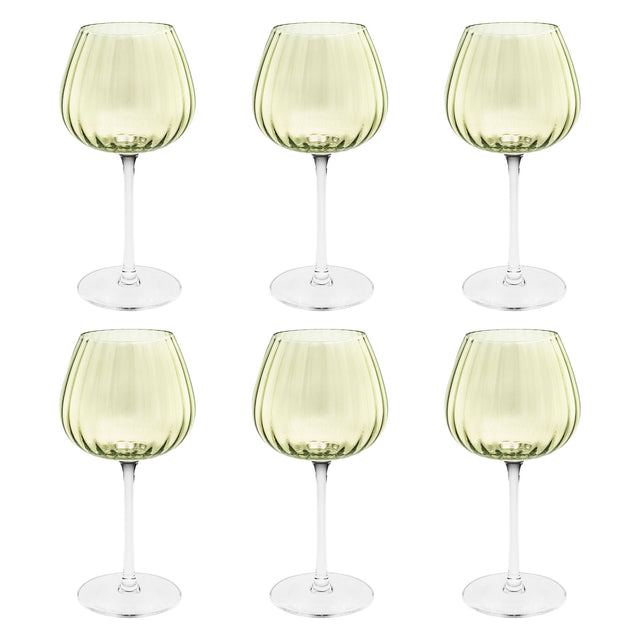 ROSE & TULIPANI Prismia Calici Universali Set 6 Pezzi 460ml Verde Vetro Soffiato e Pasta