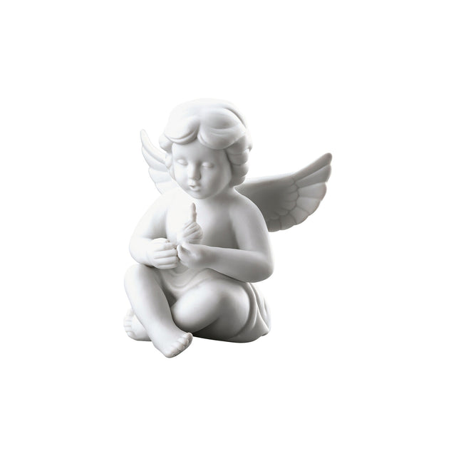 Le sue ali leggere si aprono dolcemente dietro di lui, mentre la tunica cade in morbide pieghe, dando movimento e leggerezza alla figura. La porcellana Rosenthal mette in risalto ogni dettaglio, dalle espressioni angeliche ai ricami della torta, creando un'opera armoniosa e raffinata.
