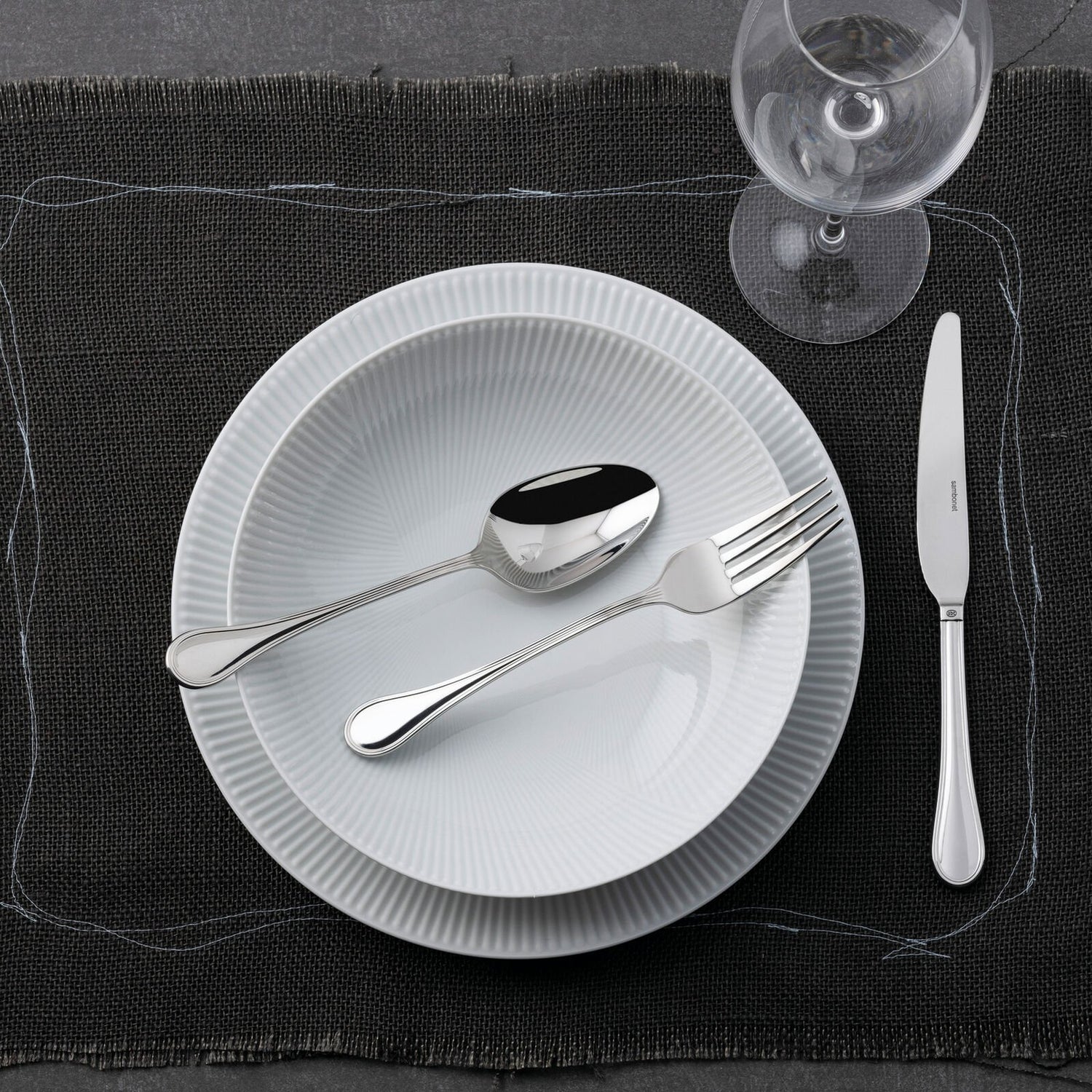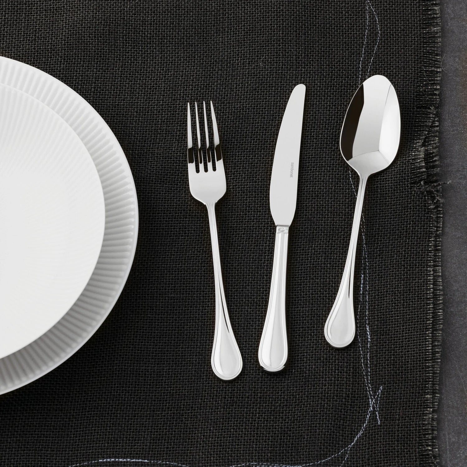 Elegante e ricca di fascino. Grazie al doppio filo in rilievo e al punzone originale Sambonet posto sul manico dei coltelli, la collezione Royal esprime il meglio dell'eccellenza produttiva del marchio e ne valorizza l'heritage.