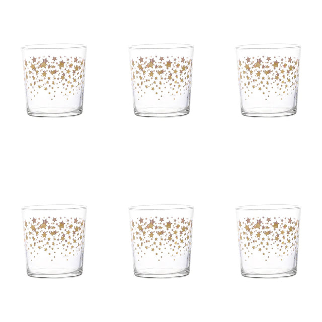 SIMPLE DAY Set 6 Bicchieri Stelle di Natale 350ml Oro Vetro