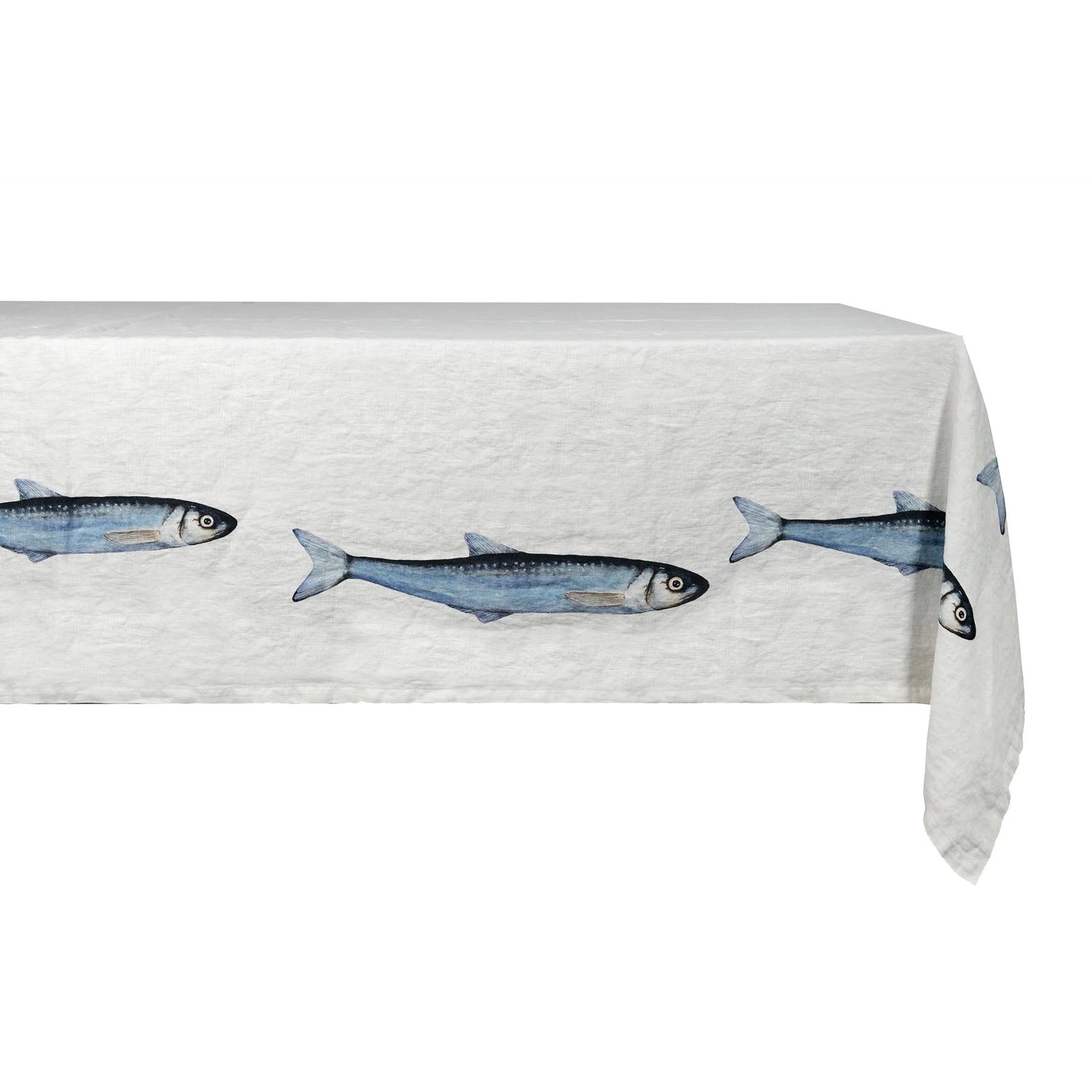 SIMPLE DAY Tovaglia Sardine in Lino 100% 160x320cm Bianco Azzurro