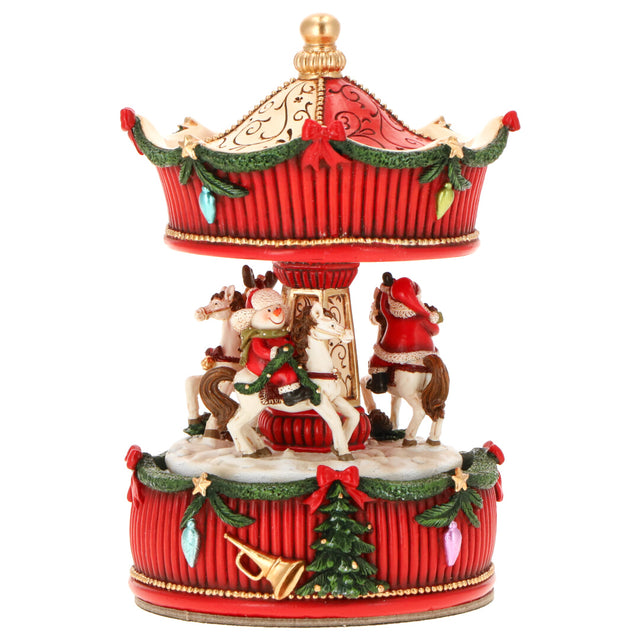 Bellissimo carosello di Natale musicale Timstor con movimento rotatorio e musica. Questa divertente decorazione che suona la melodia Merry-go Round mentre i cavalli a dondolo ruotano, è ideale per decorare la tua casa durante le festività natalizie e ricreare una calda atmosfera.