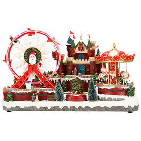 TIMSTOR - Scena Natalizia Paesaggio di Natale Ruota Panoramica e Carosello Giostra 49cm Movimento e LED