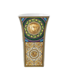Questo elegante Vaso Versace Barocco Mosaic realizzato da Rosenthal incarna il lusso e la raffinatezza tipici della famosa casa di moda. Con un'altezza di 26 cm, il vaso è impreziosito dal celebre motivo Barocco Mosaic, che fonde colori vibranti e dettagli dorati con la rappresentazione iconica di Medusa al centro, simbolo distintivo della collezione Versace.