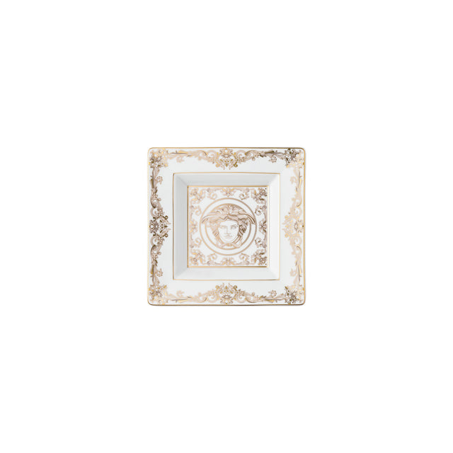 La collezione Medusa Gala presenta motivi Medusa e Barocco dorati su uno sfondo di porcellana bianca per donare alla tavola un tocco di eleganza. Questo articolo in porcellana è perfetto come dettaglio decorativo da esporre su un tavolino da ingresso o da caffè.