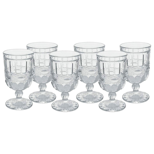 Il set di 6 calici Villa d'Este Home Tivoli è l'emblema della raffinatezza, perfetto per chi ama una tavola dal fascino intramontabile. Realizzati in vetro lavorato, questi calici si distinguono per il loro design ricercato con dettagli in rilievo che richiamano lo stile vintage, donando un tocco di classe e prestigio a ogni occasione.