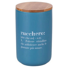 Con una capacità generosa di 1 litro, questo barattolo è ideale per l’uso quotidiano e si distingue per il layout grafico doubleface con scritte in italiano e inglese ("Zucchero/Sugar"), che regala un tocco contemporaneo e originale. La tonalità verde acqua elegante si integra perfettamente in cucine moderne e curate.