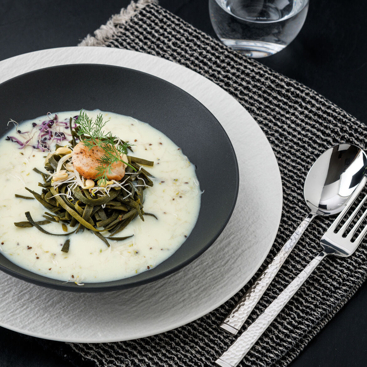 Stupite i vostri ospiti con stoviglie dal design raffinato. Naturale, originale e con una speciale sensazione al tatto: questo è Manufacture Rock. Lo stile artigianale nella forma della porcellana dalla finitura opaca con effetto ardesia rende questa collezione davvero speciale. Unita agli articoli dipinti a mano della collezione sorella Manufacture porterete calore sulla vostra tavola. Set composto da 6 piatti piani.