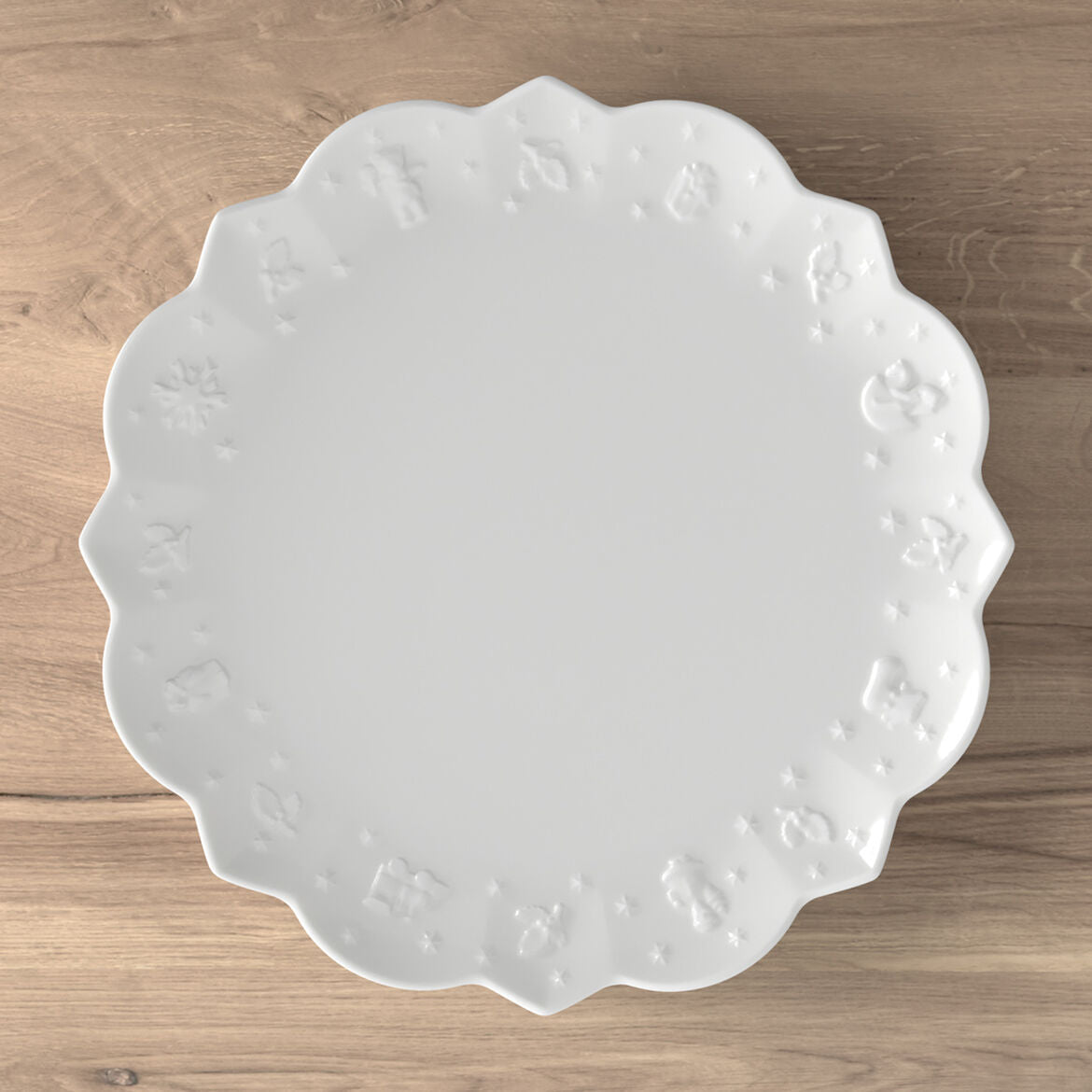Toy's Delight Royal Classic si ispira alla forma dei nostalgici piatti di carta ed è decorata con un pregiato rilievo di porcellana. Questo rilievo raffigura motivi di tipici giocattoli dei Monti Metalliferi. La collezione dal bianco purissimo si abbina straordinariamente bene ai pezzi di Toy‘s Delight dai colori natalizi. Questo affascinante piatto è un vero richiamo visivo sulla vostra tavola natalizia. Stupite i vostri ospiti con porcellana natalizia.