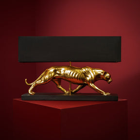 La Lampada da tavolo Pantera Baghiro di Werns porta un tocco di audacia e sofisticatezza alla tua casa. La base della lampada, a forma di pantera in resina, è finemente dettagliata con finiture in oro e nero, creando un contrasto elegante e moderno.