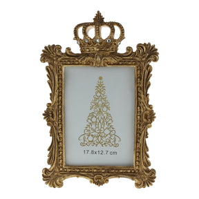 Portafoto dal design non convenzionale colo oro perfetti per ambienti Glam con una corona nella parte superiore.