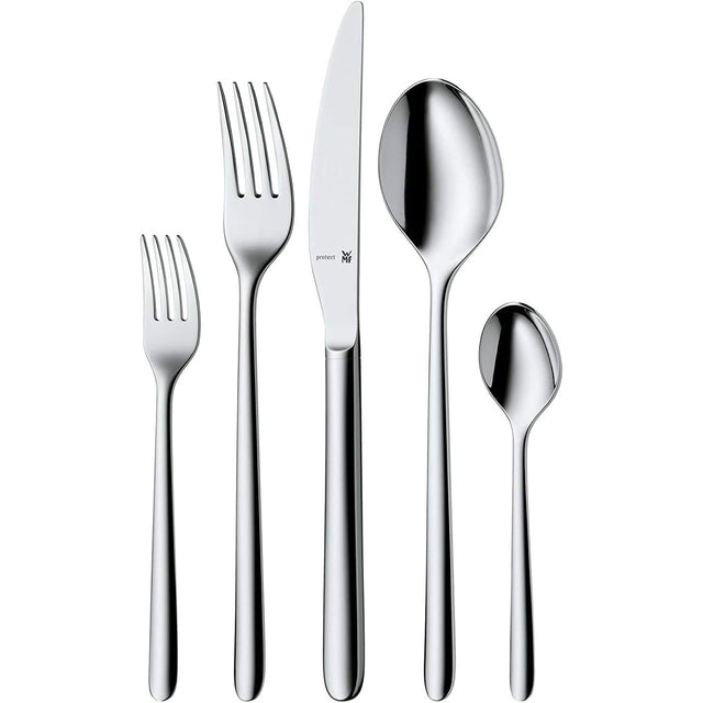 Posate Flame Plus: raffinatezza delicata. Rendi ogni esperienza culinaria accattivante con le posate Flame Plus di WMF. Unendo un raffinato design dalle linee extra lunghe e slanciate per una raffinatezza straordinaria. Questa estetica leggera e delicata è caratterizzata dall'esclusivo Cromargan protect®, una finitura unica che garantisce un'eccezionale resistenza ai graffi e ai segni d'usura, per una manutenzione senza sforzo. Sapientemente realizzato con cura, questo set di posate ergonomico si adatta perfettamente a ogni mano ed è prodotto con tutta l'abilità e il know-how che hanno reso noto il brand WMF, compresi i coltelli con lame inserite in acciaio forgiato che mantengono la loro affilatura ed elasticità nel tempo. Lavabile in lavastoviglie per una pulizia facile e veloce, viene fornito in una bella confezione per una conservazione sicura e pratica.