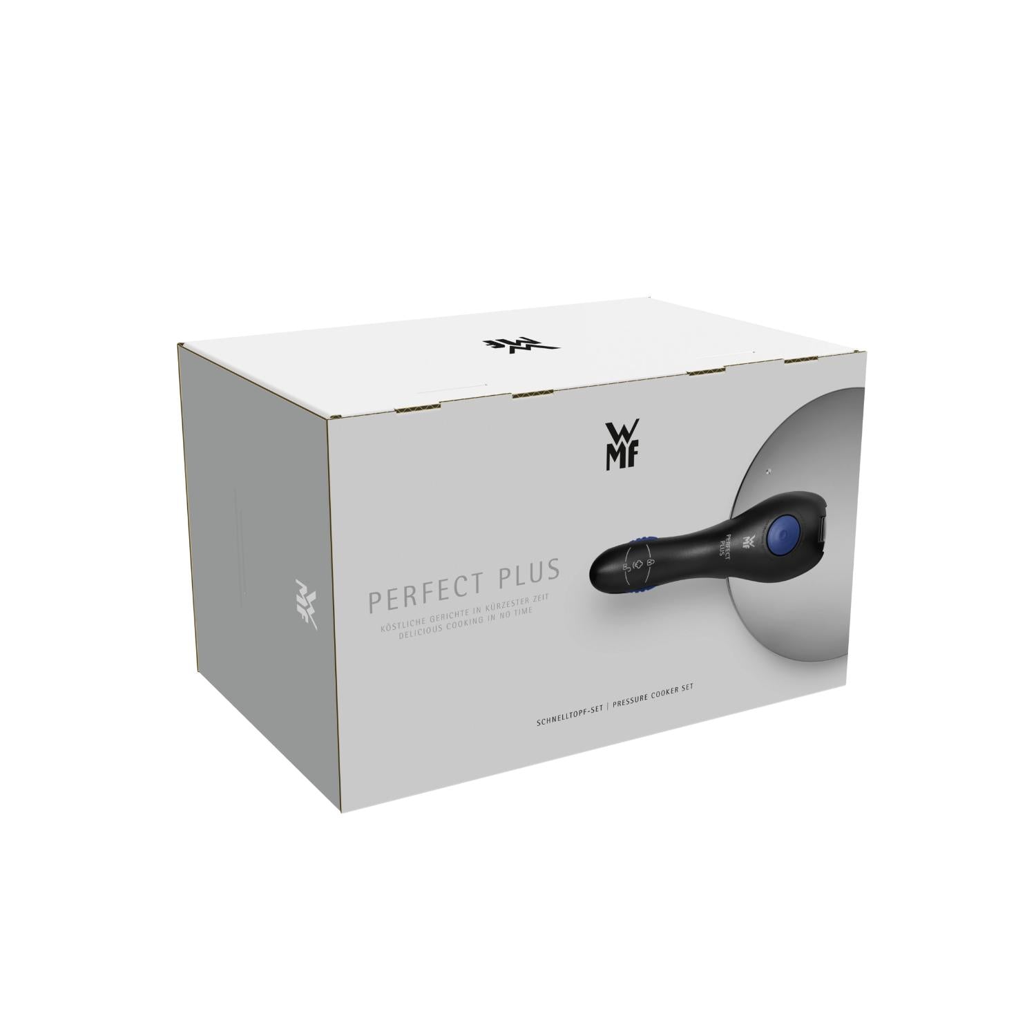 Le pentole a pressione della linea WMF Perfect Plus sono perfette per tutti coloro che hanno poco tempo per cucinare ma allo stesso tempo non vogliono rinunciare a un pasto sano e gustoso. Il cibo viene cotto ad alta pressione e temperatura, riducendo non solo il tempo di cottura fino al 70%, ma anche il consumo di energia. Vitamine e minerali degli alimenti si conservano e il gusto della pietanza rimane invariato. È ideale per cucinare tutti i tipi di alimenti: verdure, carne e pesce, cereali, legumi e molto altro ancora. La confezione contiene: 1 pentola a pressione da 4,5 l senza inserto, 1 pentola a pressione da 3,0 l senza coperchio.